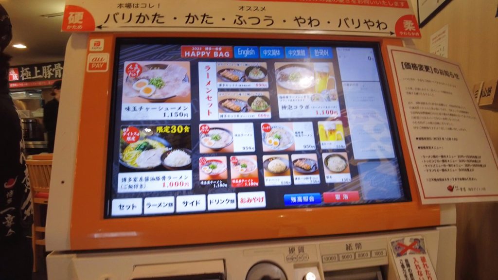 券売機と今回の注文