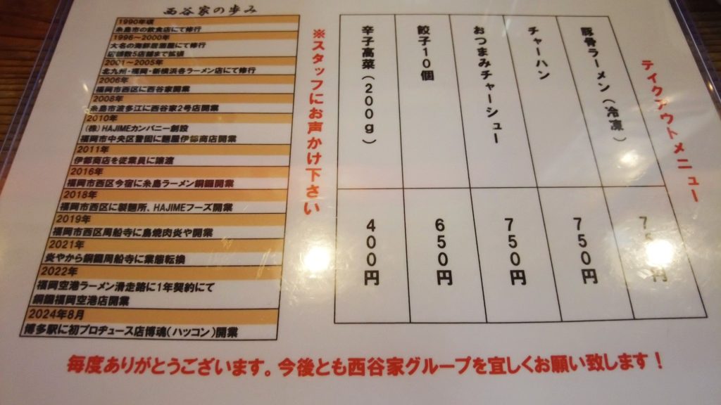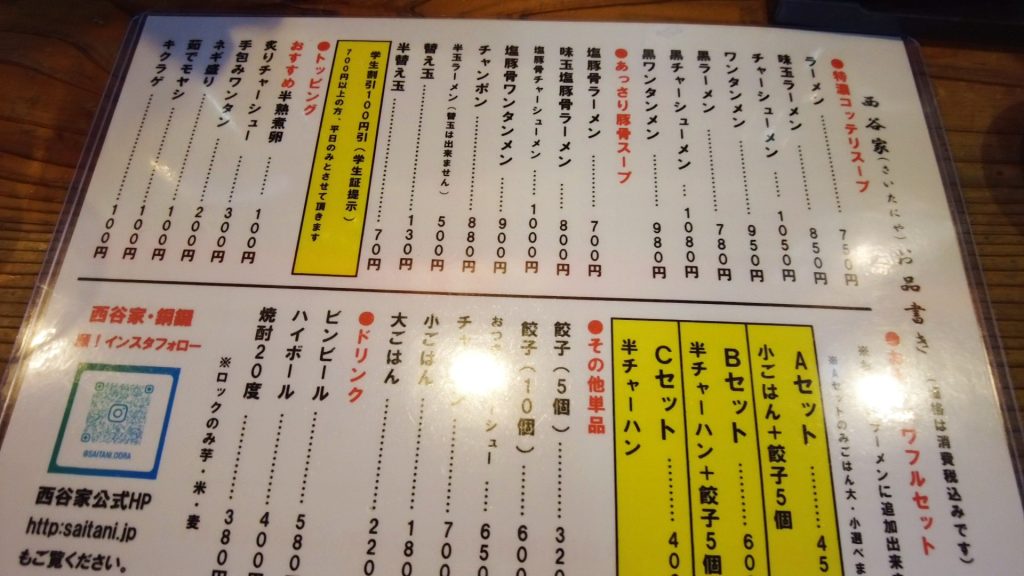 【ラーメン処 西谷家 野方本店】