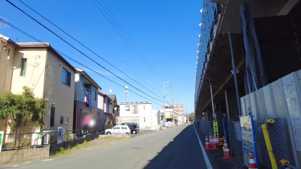 手前の側道を